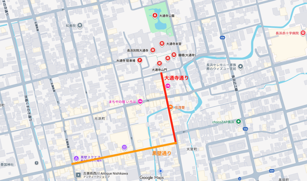 確かに、黒壁通りを抜けると大通寺通りになりますし、他にも通りがあるので周遊してもらえるようになると、より多くの方により長く深く長浜を楽しんでもらえますね!